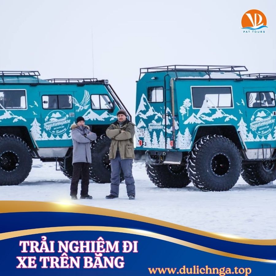 Xe bus đưa đón theo hành trình/ xe chuyên dụng đi trên băng