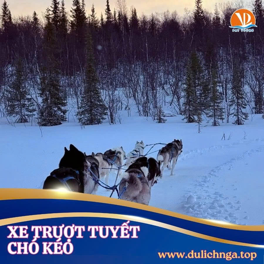 Trải nghiệm trượt xe chó Husky trong rừng tuyết ~1km